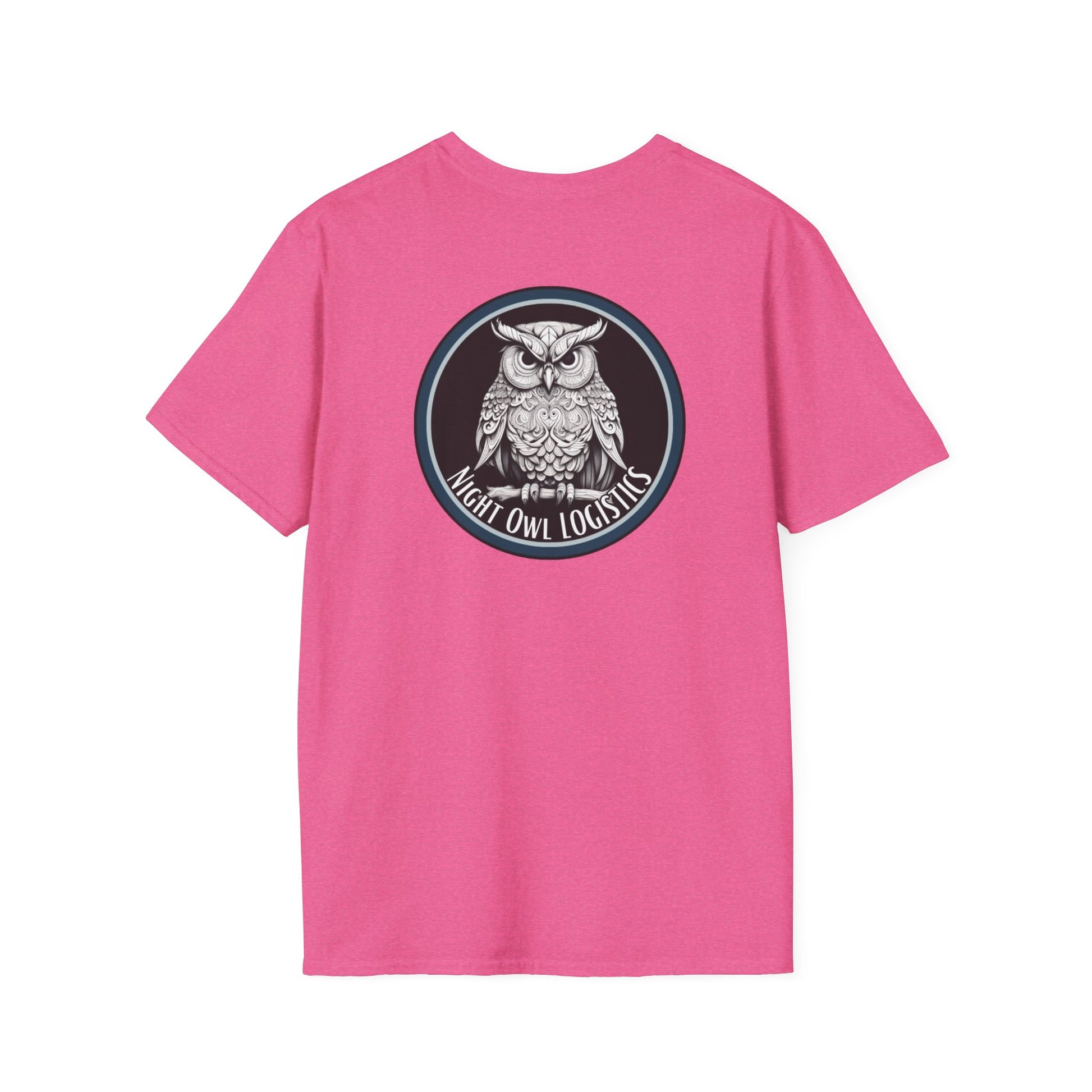 A Night Owl Logistics logo Tee, designed for employees or fans of the company to wear as a casual outfit. This unisex T-shirt is made from 100% ring-spun cotton, providing a lightweight and smooth fabric perfect for printing. The classic fit and crew neckline offer a versatile style suitable for various occasions, making it a comfortable and stylish addition to anyone's wardrobe.