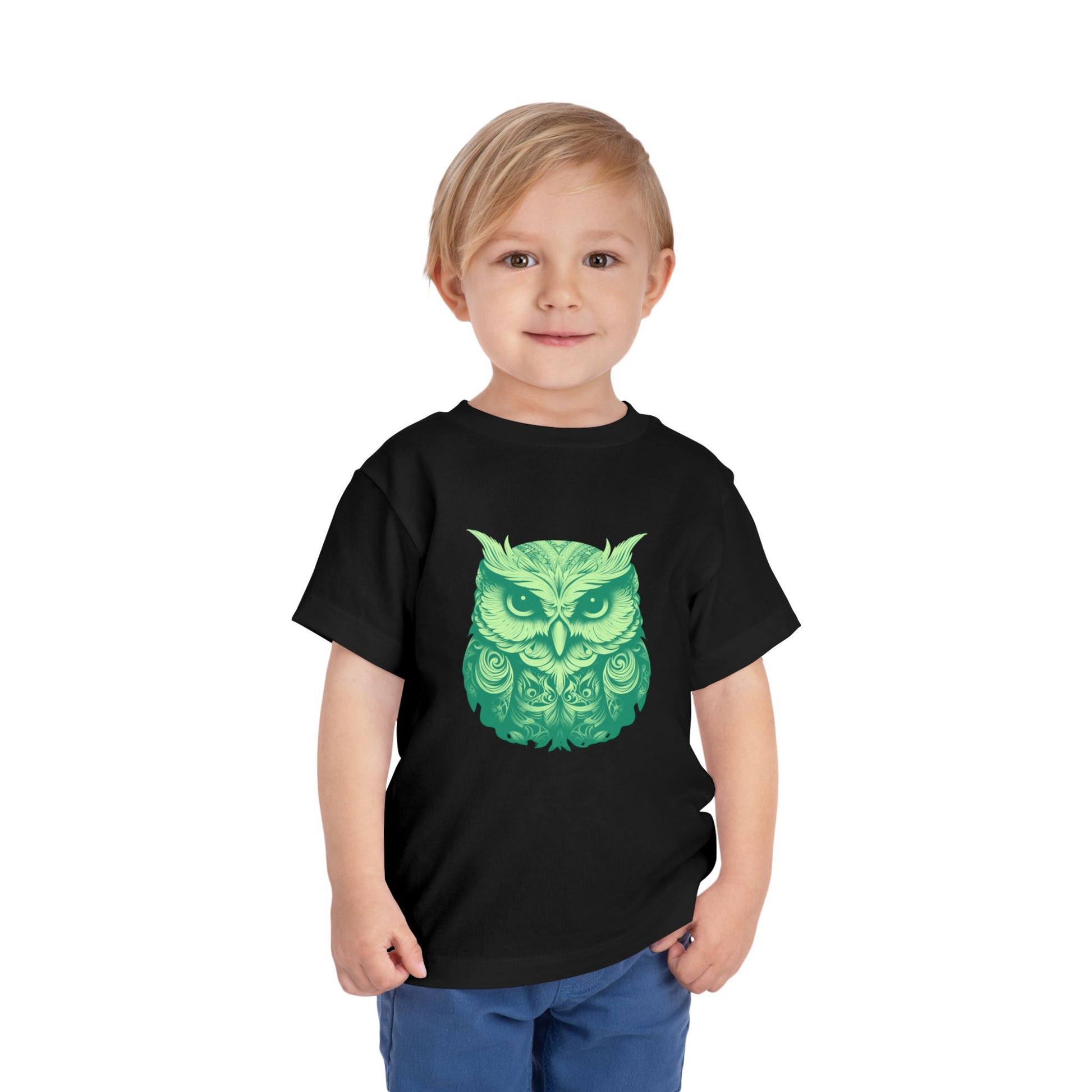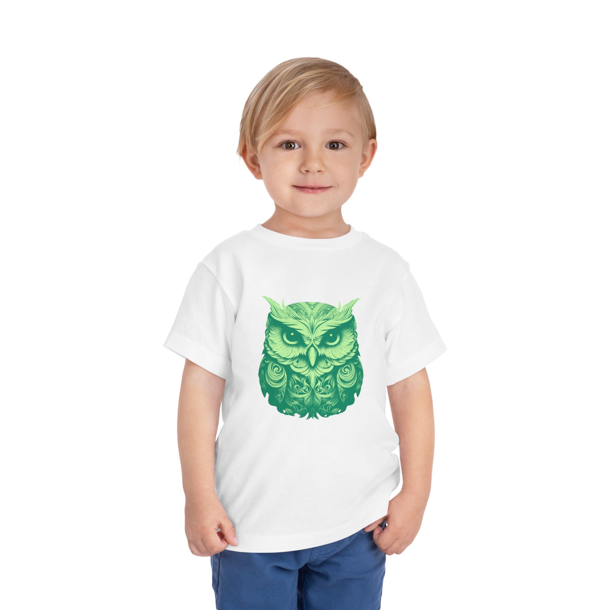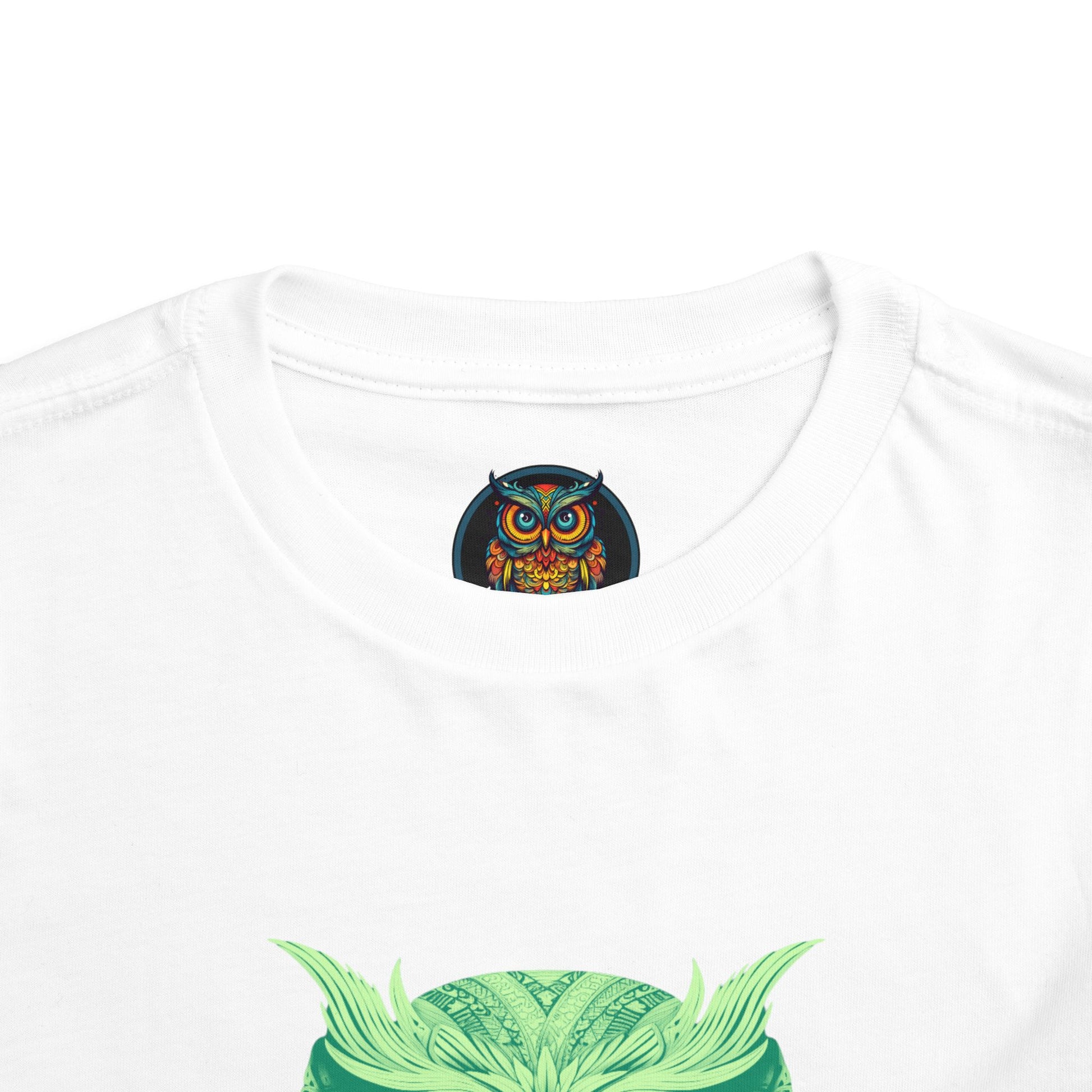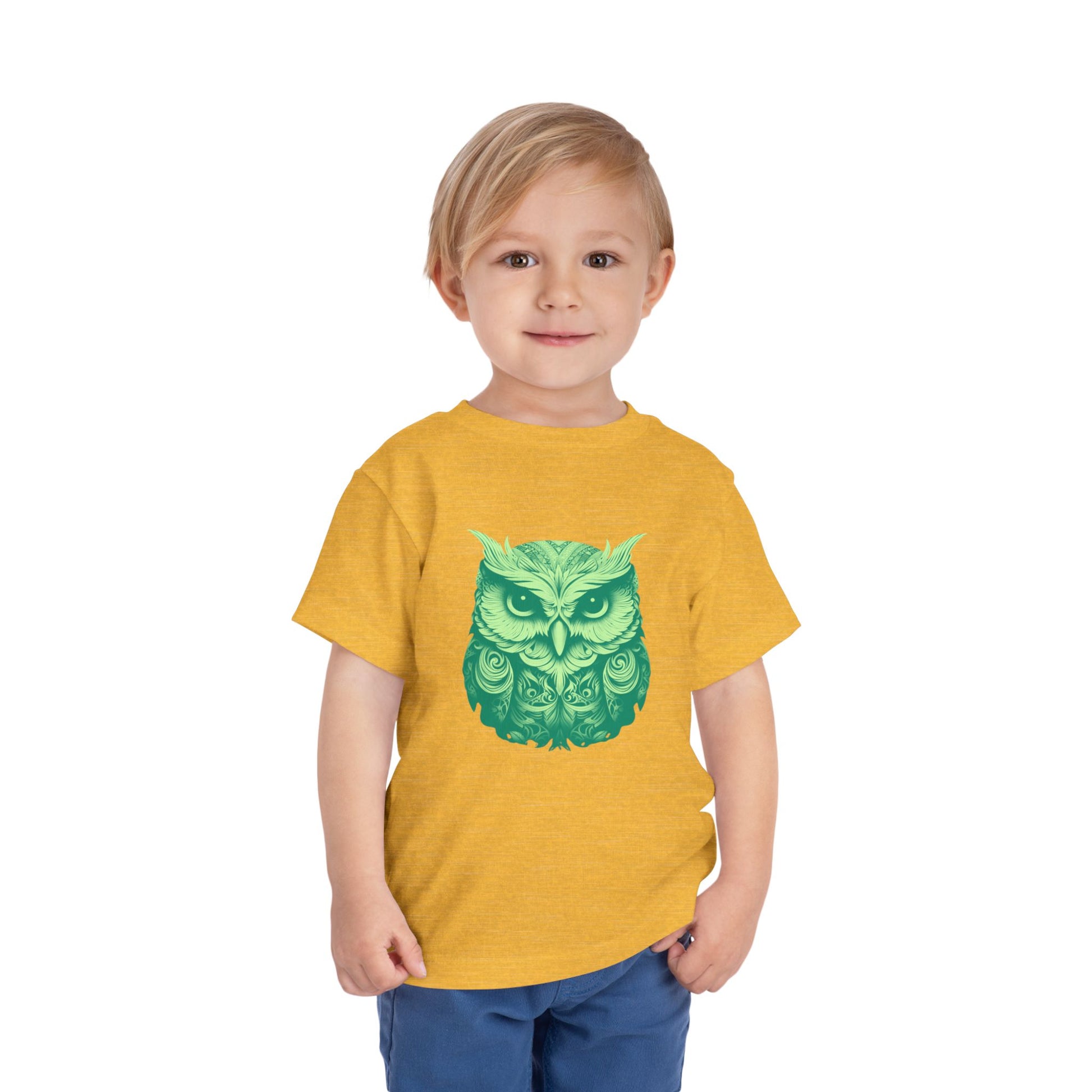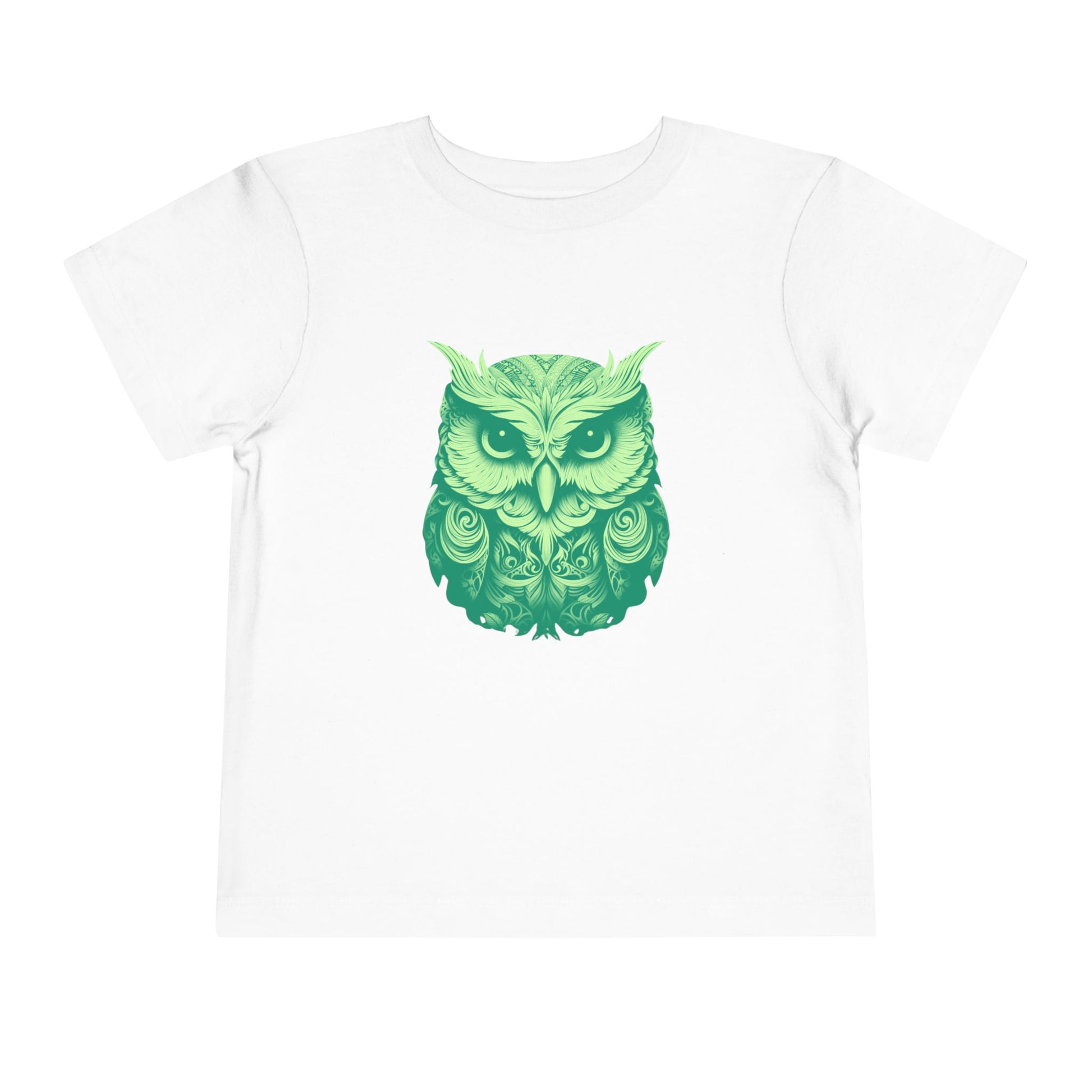Soft, lightweight toddler tee featuring a detailed green owl illustration that feels both whimsical and a little wild. The gentle drape of the fabric lets the design sit comfortably on little shoulders, whether they're exploring the backyard or nestling in for storytime. Breathable cotton keeps movement easy and skin happy, while the tear-away label eliminates scratchy tags. This shirt blends a touch of nature-inspired charm with everyday wearability—great for quiet afternoons, nature walks, or cozy mornings with a favorite book.